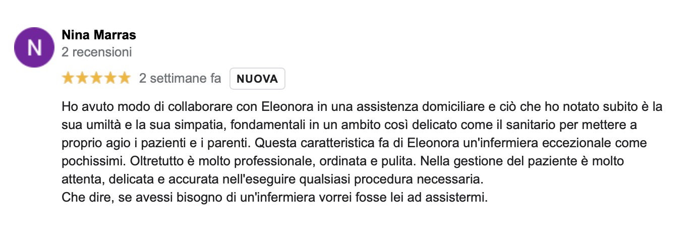 - Assistenza infermieristica150 €dalle 8:00 alle 14:00