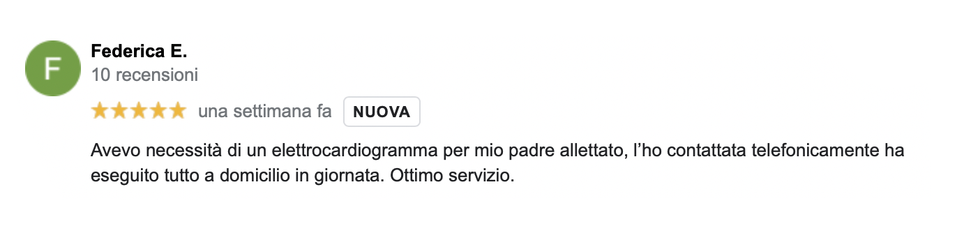- Perché forniamo un’ampia gamma di servizi e visite. Per esempio, in caso di elettrocardiogramma, eseguiamo l’ECG a domicilio e lo facciamo refertare dal nostro cardiologo di fiducia.